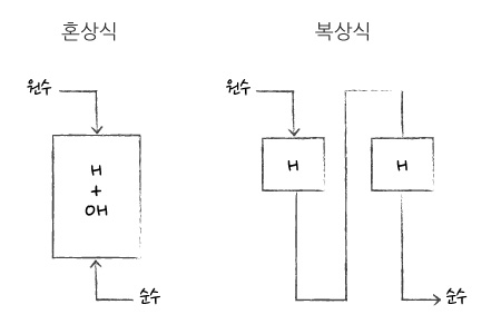 혼상식 : 양이온 수지와 음이온 수지를 혼합해서 한 개의 탑 속에서 음이온층과 양이온층을 거치게 하는 것.