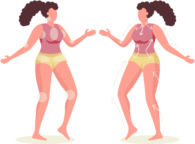 또한 혈액과 달리 림프는 펌프 작용으로 이동하지 않습니다. 대신 림프관의 주변 근육 수축으로 압력을 받을 때 림프액이 수동적으로 이동 합니다. 이런 수동적인 림프액의 이동 매커니즘을 응용해 브러시로 피부 아래에 있는 림프계를 자극시켜 림프 순환에 도움을 주며 독소 배출과 붓기 제거에도 용이합니다.