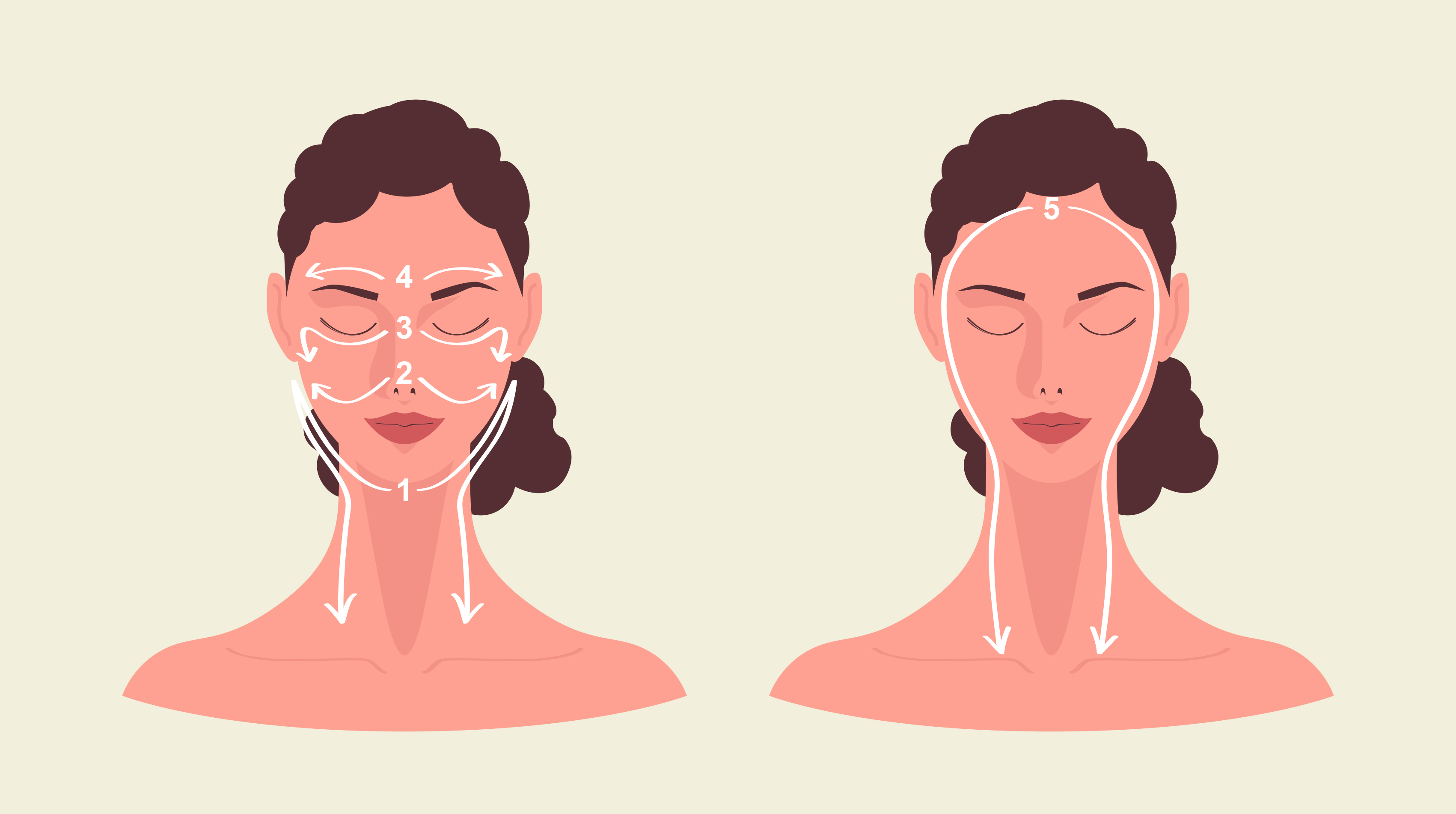3. 귀 밑에서 목빗근을 따라 쇄골 중앙으로 브러싱을 하고 뒷목 부분은 어깨 쪽으로 브러싱을 합니다.