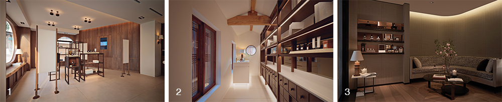 1. 이스 라이브러리만의 스킨 케어와 라이프 스타일 제품들을 직접 체험 해볼 수 있는 소격동 Showroom입니다. 전통 한국의 서재를 모던하게 표현한 공간으로 장인을 통해 재해석한 전통 가구와 모던한 요소의 어울림이 창조적으로 표현되어 있습니다.