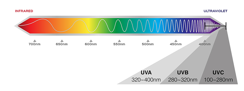 100~280nm 파장의 UVC는 다행스럽게도 지표면까지 도달하지 않습니다. 그 이유는 UVC에 유기체가 노출될 경우 DNA, RNA 및 단백질에 흡수되고 이후 세포벽을 파열 시켜 염색체를 변이 시키고 유기체의 사망까지 이르게 할 수 있습니다. 또한 DNA 복제 과정이 중단되어 세포가 더 이상 복제되지 않게 됩니다. 이러한 특징 때문에 상업적으로는 멸균용으로 사용됩니다. 그리고 만에 하나 UVC가 눈에 닿게 되면 각막에 손상을 입힌다고 합니다.