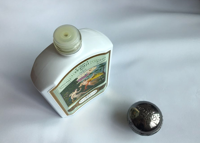 위의 영상에서는 스프레이로 되어있었지만 실제로는 토출구가 좁은 세구병 이었습니다. 뚜껑은 철로 되어있는데 발등에 떨어트리면 아플 정도의 무게입니다. 어느 후기에서는 뚜껑이 녹슬었다고 나와있었는데 그 부분을 잘 관리해야 할 것 같습니다. 실제로 핸드크림도 토출구 쪽 철제 부분에 닿으면서 크림이 검게 변질됐었습니다. 하지만 예쁘기 때문에 그 부분을 감안할 수 있습니다.